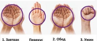 - Размер порции должен быть примерно равен вашей ладони.